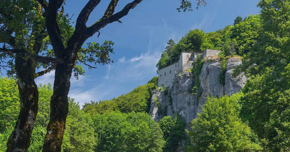 Our journey begins in Forlì, an ancient city along the Via Emilia. The tour starts at Porta Schiavonia, the only surviving medieval city gate. From there, we head to the historic center to visit the Abbey of San Mercuriale, a fine example of Lombard Romanesque architecture, and the San Domenico Museums, which house Italian art masterpieces. Leaving Forlì, we cross gentle hills to reach Meldola, where a majestic medieval fortress overlooks the town. Just a few kilometers away, nestled in the woods, lies the former Monastery of Scardavilla, a serene and contemplative site. We then climb toward the Rocca delle Camminate, once Mussolini’s summer residence, now a panoramic terrace over the valley. The day ends in Predappio, a town known for its 1930s Rationalist architecture, with landmarks like Mussolini’s birthplace and the monumental cemetery.